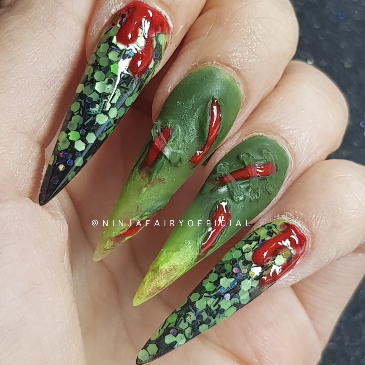 Let’s get onto the blog post subject. Which by the way if you didn’t already know is these amazing spooktacular SUPER CREEPY, SUPER LONG, Frankenstein stapled skin nails! With EXTRA BLOOD. EEEEKKKK I know – So gross. But so SO cool. Like the ULTIMATE LEVEL of Halloween coolness right now.